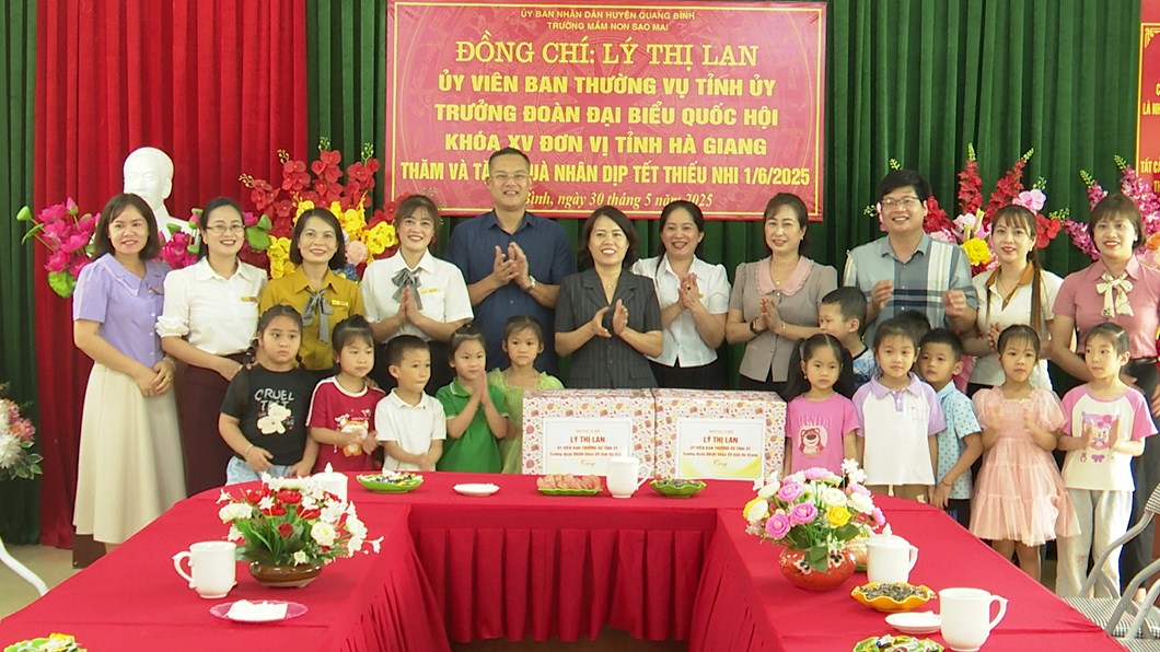 Chiều 30/5, đồng chí Lý Thị Lan, Uỷ viên BTV Tỉnh uỷ, Trưởng đoàn đại biểu Quốc hội khoá XV đơn vị tỉnh Hà giang thăm và tặng quà Tết thiếu nhi 1/6 tại Trường Mầm Non Sao Mai, thị trấn Yên Bình. Cùng đi có đồng chí Đào Quang Diệu, Quyền Bí thư Huyện uỷ; đồng chí Nguyễn Anh Đức, Phó Bí thư, Chủ tịch UBND huyện; lãnh đạo Phòng GD và ĐT huyện.