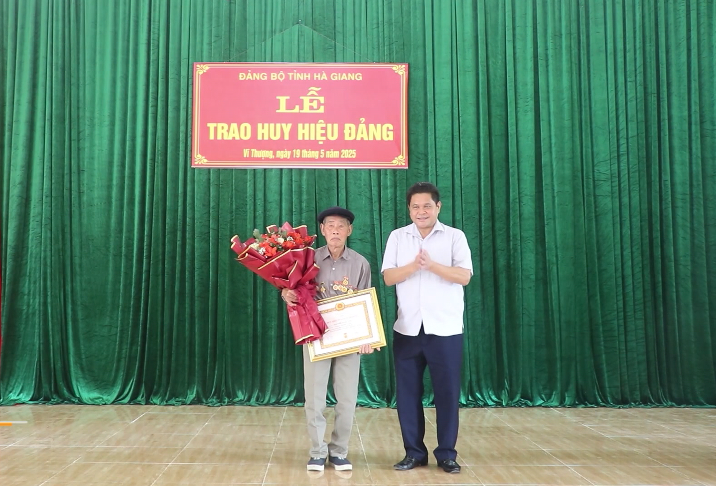 Ngày 19/5, Đảng ủy xã Vĩ Thượng long trọng tổ chức Lễ trao Huy hiệu 75, 45, 40 và 30 tuổi Đảng nhân dịp 02/9 cho 07 đồng chí đảng viên theo Quyết định của Ban Thường vụ (BTV) Tỉnh ủy Hà Giang. Dự có đồng chí Vàng Seo Cón - Ủy viên BTV Tỉnh ủy, Chủ tịch Ủy ban MTTQ tỉnh; đồng chí Đào Quang Diệu - Quyền Bí thư Huyện ủy; lãnh đạo Ban Tổ chức Huyện ủy và Thường trực Đảng ủy, HĐND, UBND, UBMTTQ xã Vĩ Thượng.