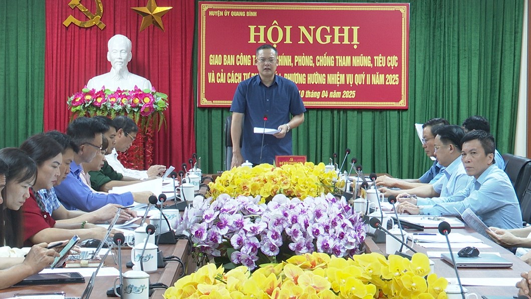 Chiều 10/ 4, Huyện uỷ Quang Bình tổ chức Hội nghị giao ban công tác nội chính, phòng chống tham nhũng, lãng phí, tiêu cực và cải cách tư pháp quý I, phương hướng nhiệm vụ quý II năm 2025. Dự hội nghị có lãnh đạo các Ban xây dựng Đảng Huyện uỷ, các cơ quan khối nội chính và Bí thư Đảng uỷ các xã, thị trấn. Đồng chí Đào Quang Diệu, Quyền Bí thư Huyện uỷ chủ trì hội nghị.