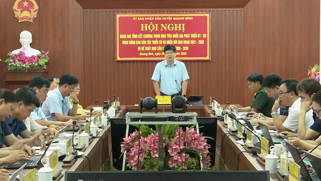 Ngày 9/5, UBND huyện Quang Bình tổ chức Hội nghị đánh giá kết quả thực hiện Chương trình mục tiêu Quốc gia phát triển kinh tế - xã hội vùng đồng bào DTTS và miền núi giai đoạn 2021 - 2025. Đồng chí Nguyễn Anh Đức, Phó Bí thư Huyện ủy, Chủ tịch UBND huyện chủ trì hội nghị.
