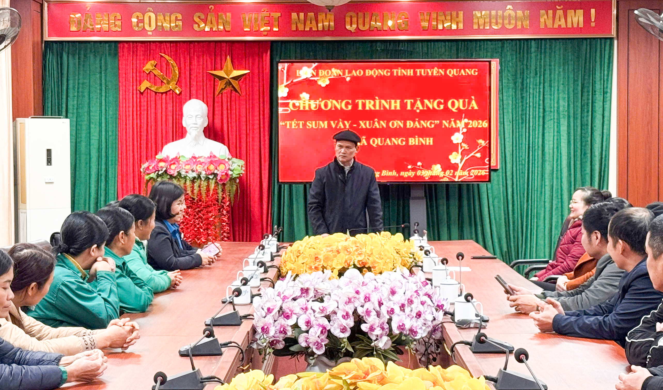 Dự và trao quà có đồng chí Triệu Tài Phong, Tỉnh uỷ viên, Phó chủ tịch MTTQ Việt Nam tỉnh Tuyên Quang, Chủ tịch Liên đoàn Lao động tỉnh cùng các đồng chí trong đoàn công tác; Về phía xã có đồng chí Hoàng Thị Tuyên, Phó Bí thư thường trực Đảng uỷ xã cùng các đoàn viên, người lao động được nhận quà trên địa bàn xã.