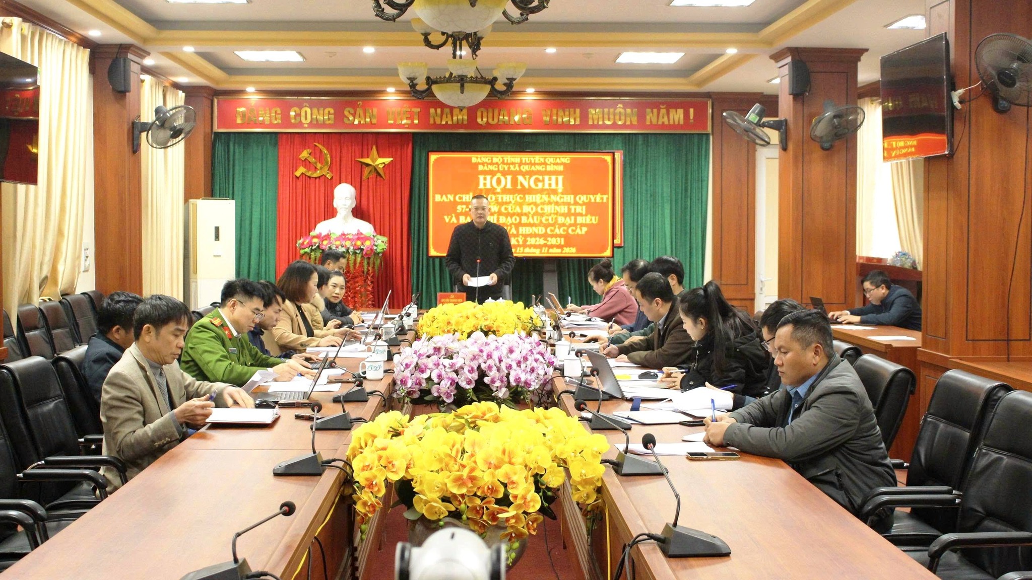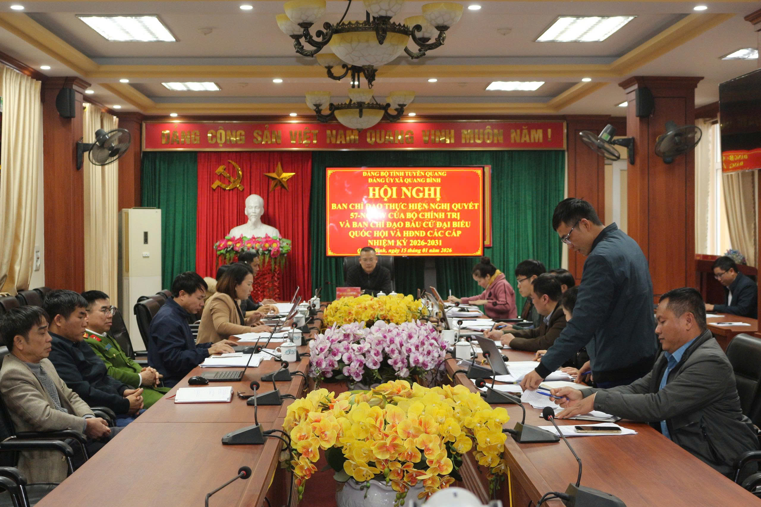 Phát biểu kết luận cuộc họp, đồng chí Bí thư Đảng uỷ xã ghi nhận và đánh giá cao tinh thần trách nhiệm của các thành viên Ban Chỉ đạo. Đồng chí yêu cầu trong thời gian tới, các cơ quan, đơn vị tiếp tục đẩy mạnh công tác tuyên truyền, quán triệt sâu rộng Nghị quyết số 57-NQ/TW; tăng cường phối hợp, chủ động tham mưu, kịp thời tháo gỡ khó khăn, vướng mắc phát sinh; đồng thời tập trung chuẩn bị tốt các điều kiện, các cơ quan chuyên môn chủ động các công việc phụ trách đẩy mạnh tăng cường phối hợp với các thôn để cuộc bầu cử đại biểu Quốc hội và HĐND các cấp diễn ra dân chủ, đúng luật, an toàn và thành công tốt đẹp.
