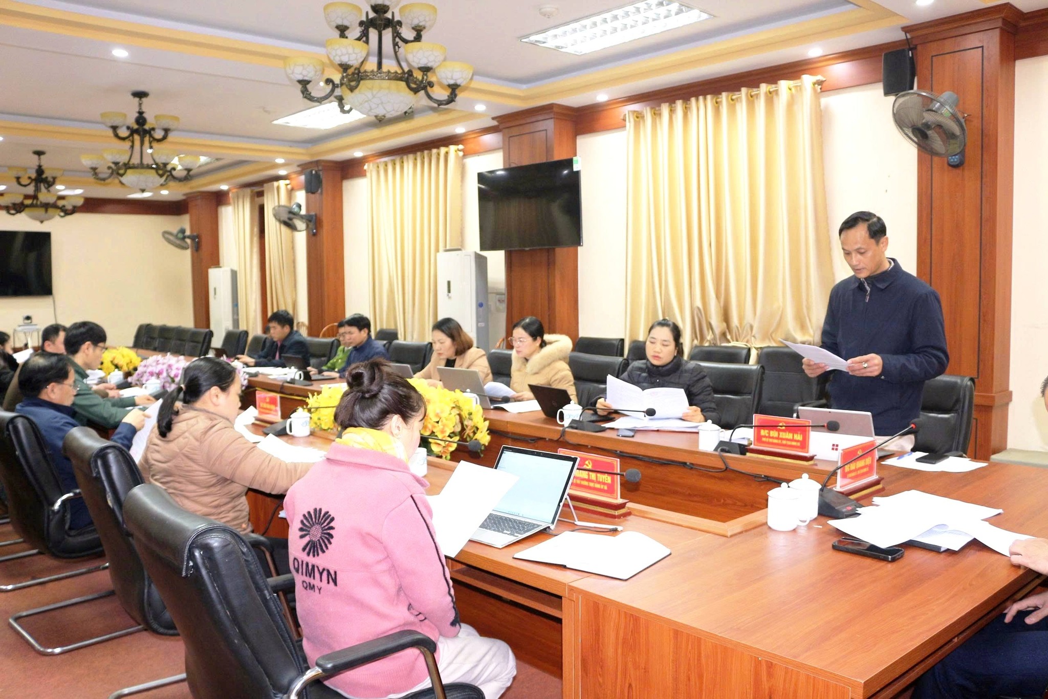 Thường trực UBND xã phát biểu tại hội nghị