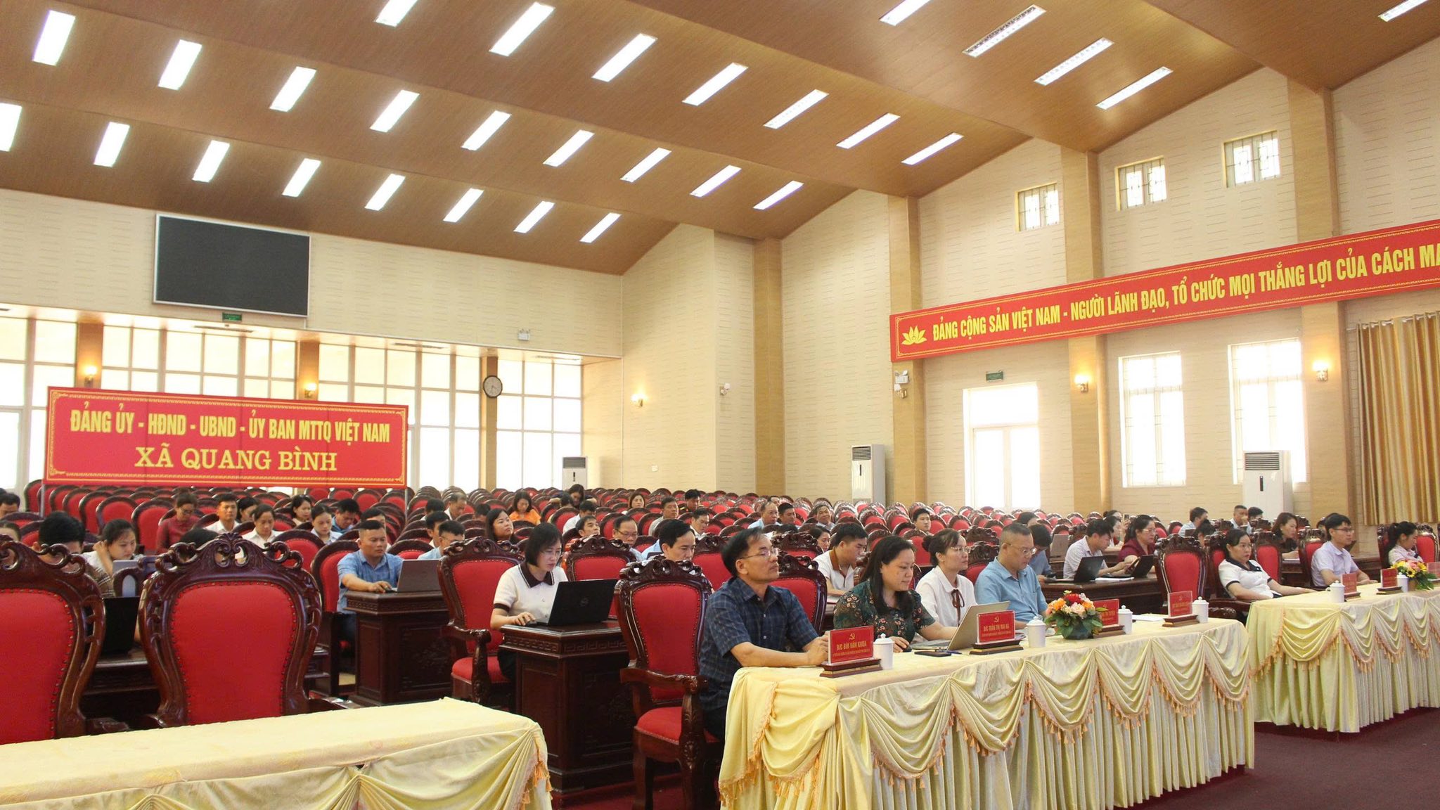 Tại điểm cầu xã Quang Bình dự có đồng chí Đào Quang Diệu- Bí thư Đảng ủy, Chủ tịch HĐND cùng các đồng chí lãnh đạo HĐND- UBND, Ủy ban MTTQ Việt Nam xã Quang Bình, các cơ quan ban ngành, và toàn thể cán bộ, đảng viên xã.