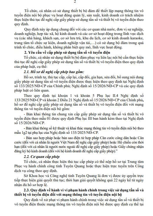 Theo quy định của pháp luật, việc sử dụng thiết bị bộ đàm phục vụ liên lạc nội bộ của cơ quan, tổ chức, doanh nghiệp phải được cấp phép sử dụng tần số vô tuyến điện, trừ các trường hợp thuộc danh mục miễn giấy phép. Tuy nhiên, thực tế vẫn còn tình trạng sử dụng thiết bị không đúng quy định, tiềm ẩn nguy cơ gây nhiễu, ảnh hưởng đến hệ thống thông tin liên lạc.
