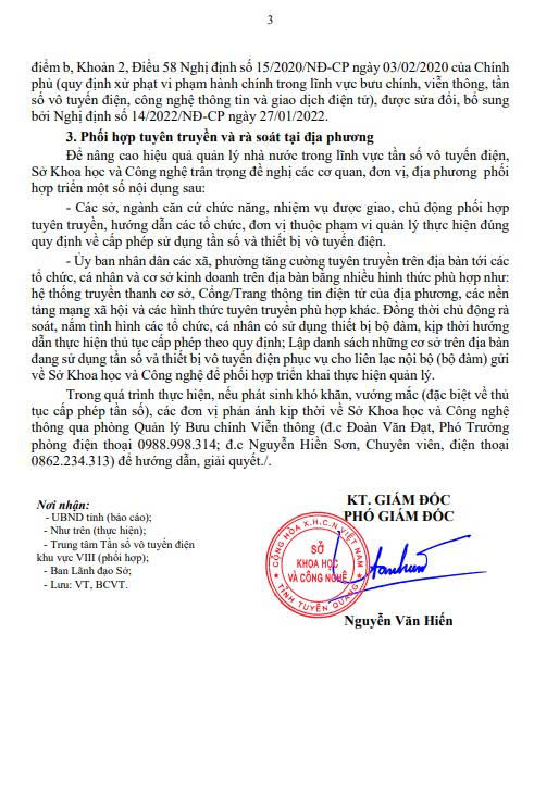 Việc chấp hành đúng quy định về sử dụng tần số và thiết bị vô tuyến điện góp phần bảo đảm an toàn thông tin liên lạc, phục vụ hiệu quả công tác quản lý, sản xuất, kinh doanh trên địa bàn tỉnh.