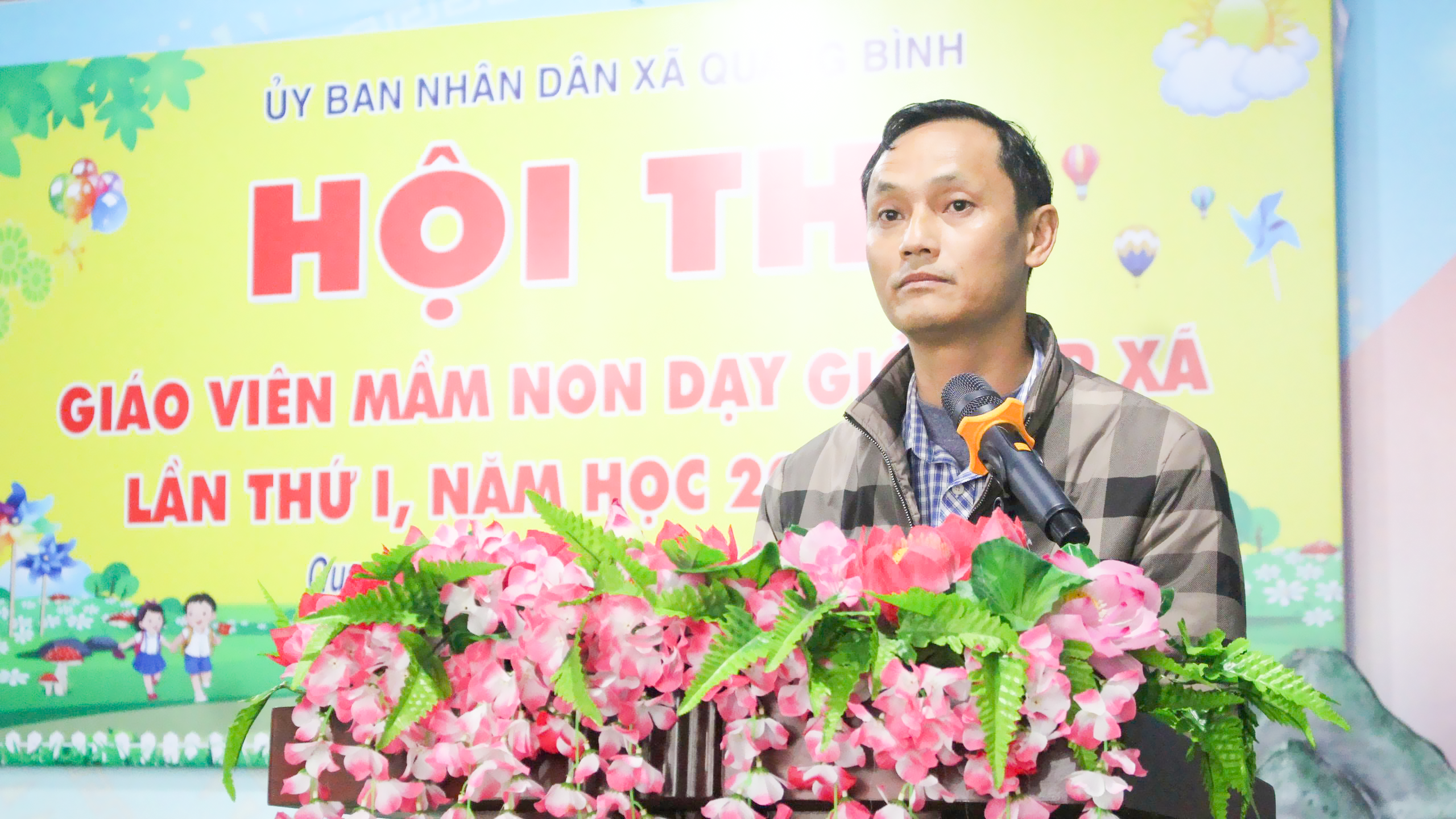 Phát biểu tại buổi khai mạc hội thi, đồng chí Chủ tịch UBND xã nhấn mạnh thông qua hội thi, lựa chọn và tôn vinh những giáo viên có thành tích xuất sắc, góp phần khích lệ tinh thần đổi mới, sáng tạo trong giảng dạy, từng bước nâng cao chất lượng giáo dục toàn diện trên địa bàn xã. Hội thi là hoạt động thiết thực, có ý nghĩa quan trọng, góp phần xây dựng đội ngũ nhà giáo vững vàng về chuyên môn, tâm huyết với nghề, đáp ứng yêu cầu đổi mới căn bản, toàn diện giáo dục và đào tạo trong giai đoạn hiện nay. Đồng thời đồng chí cũng chúc các thi sinh tham gia bình tĩnh, tự tin để đạt được kết quả cao nhất.