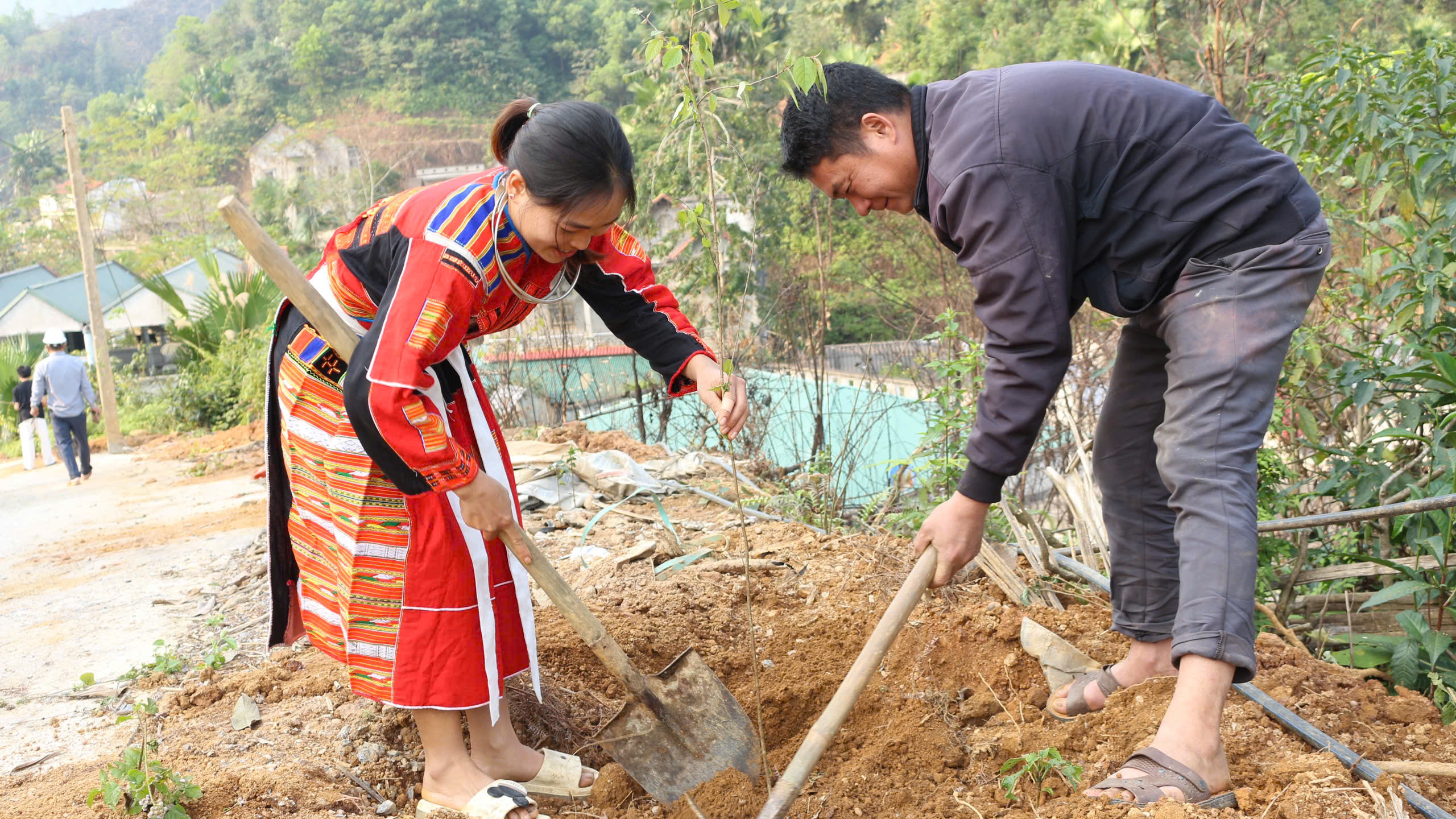 Lãnh đạo xã Quang Bình hưởng ứng trồng cây xanh tại thôn Hạ Sơn